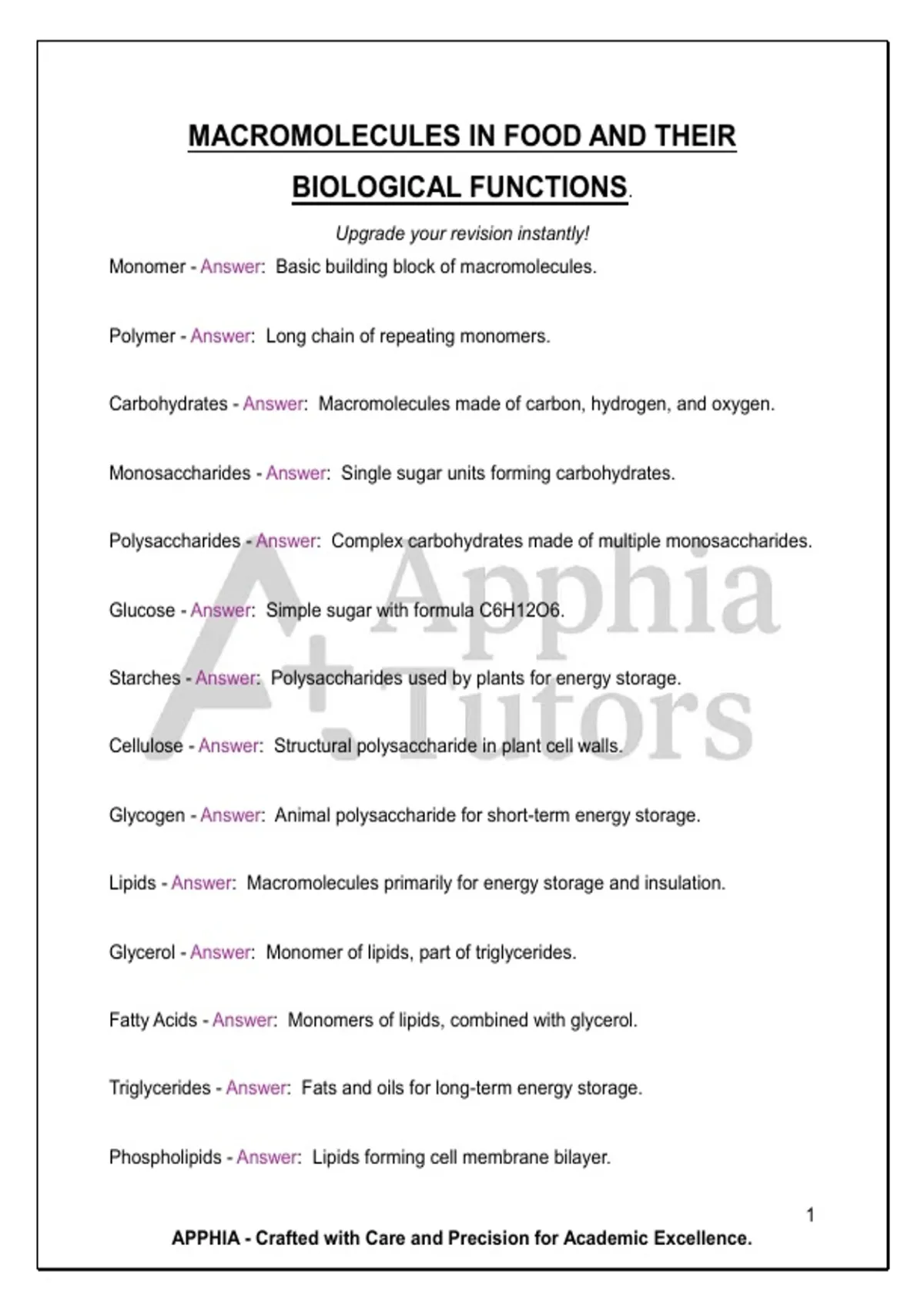 Lipids - Answer: Macromolecules primarily for energy storage and insulation.