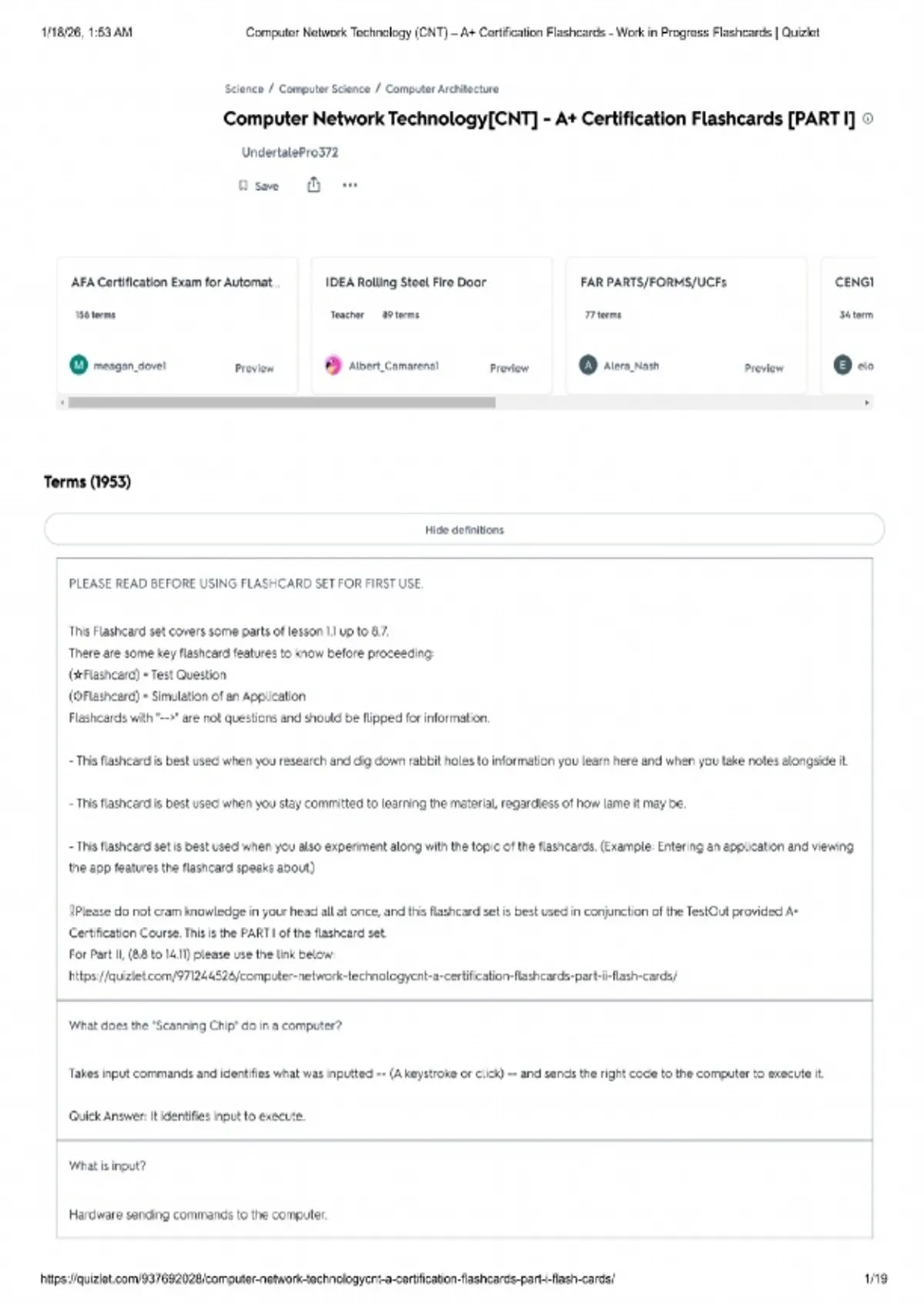 Master Computer Network Technology (CNT) and prepare for CompTIA A+ and Network+ certifications with this set of digital flashcards and test bank, designed for platforms like Quizlet. This 2025 study guide covers hardware, networking concepts, troubleshooting, security, and cloud fundamentals. Use these flashcards to efficiently memorize key terms and pass your IT certification exams.