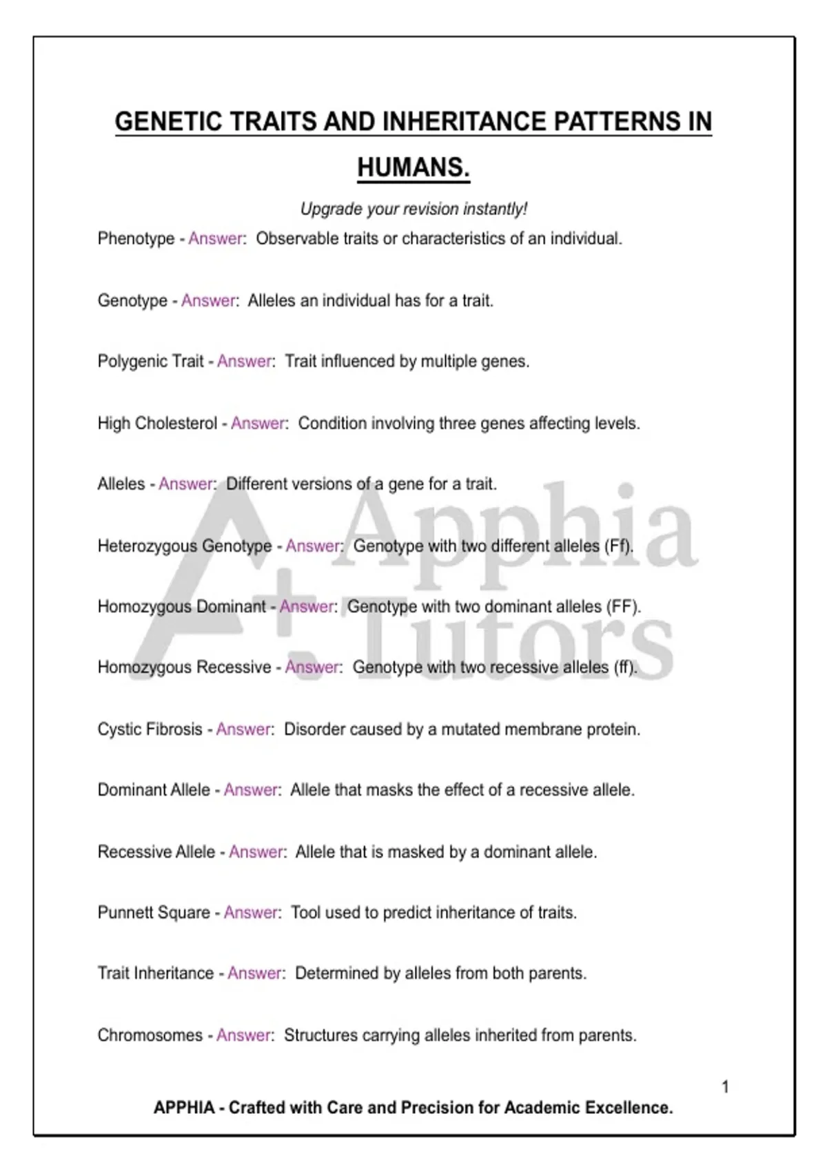 Trait Inheritance - Answer: Determined by alleles from both parents.