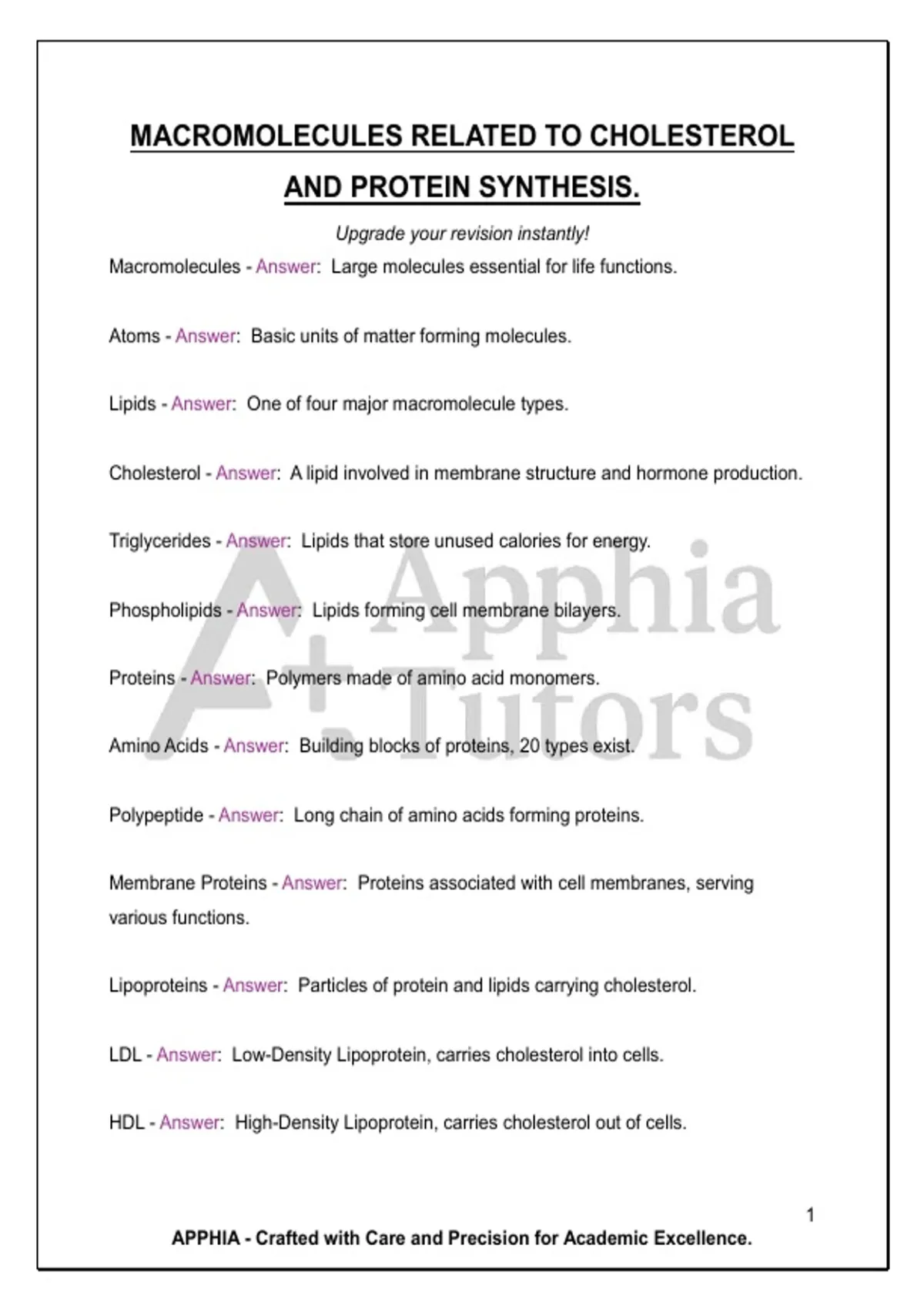 MACROMOLECULES RELATED TO CHOLESTEROL AND PROTEIN SYNTHESIS. Upgrade your revision instantly!