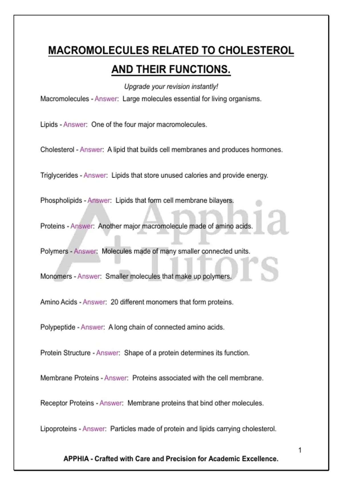 MACROMOLECULES RELATED TO CHOLESTEROL AND PROTEIN SYNTHESIS. Upgrade your revision instantly!