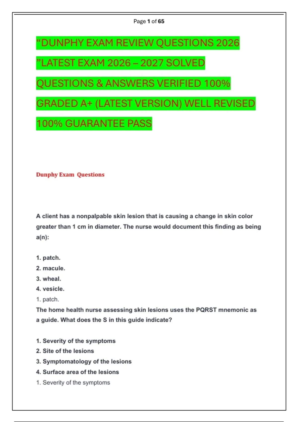 “DUNPHY EXAM REVIEW QUESTIONS 2026