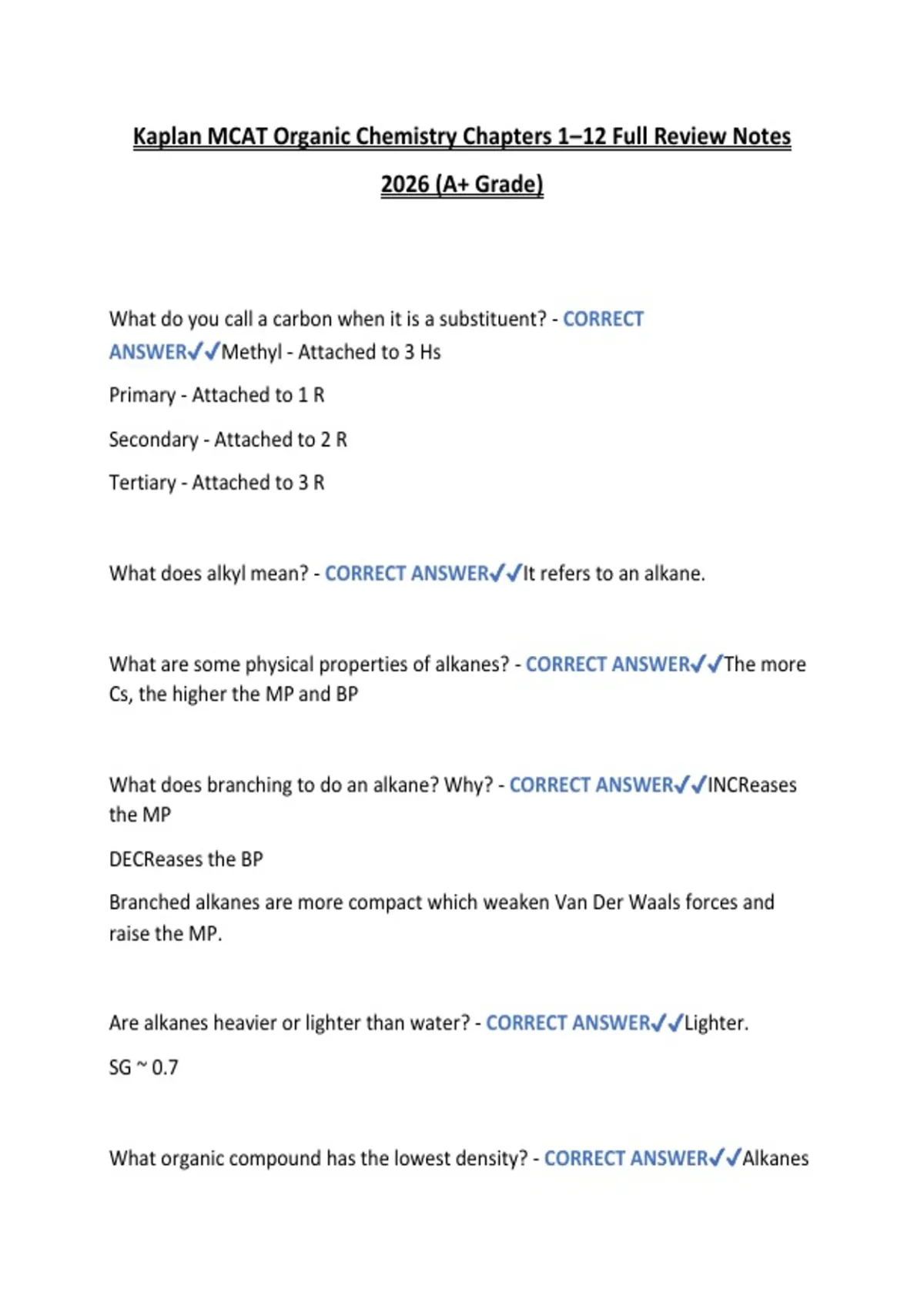 Are alkanes heavier or lighter than water? - CORRECT ANSWER✔✔Lighter.