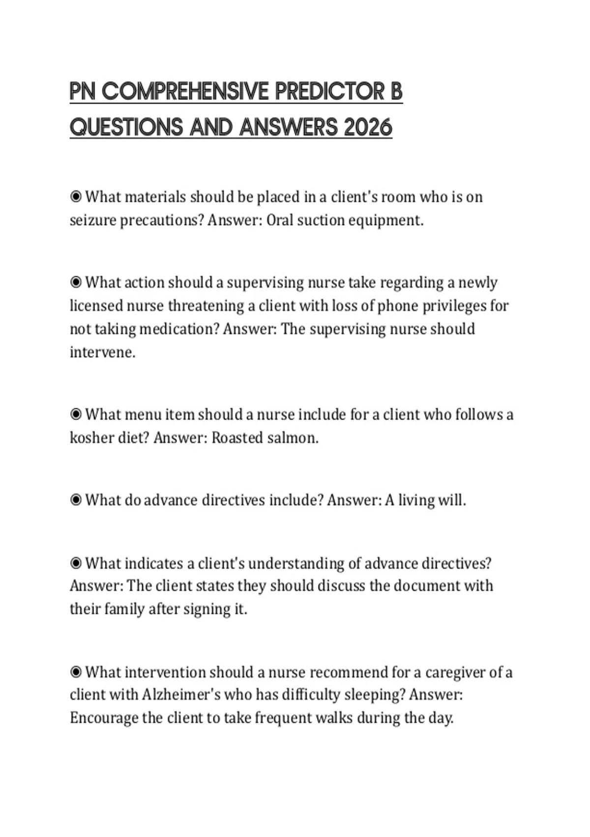 PN COMPREHENSIVE PREDICTOR B QUESTIONS AND ANSWERS 2026