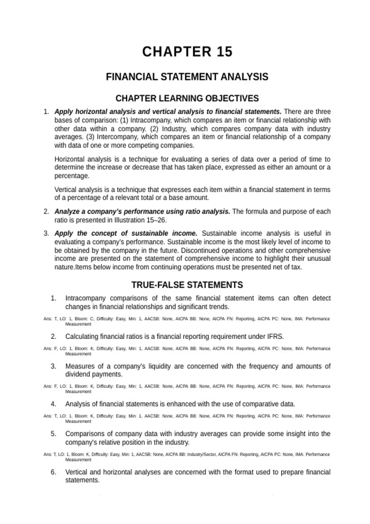 ACF Test Bank Chapter 15 – Financial Statement Analysis Exam Practice