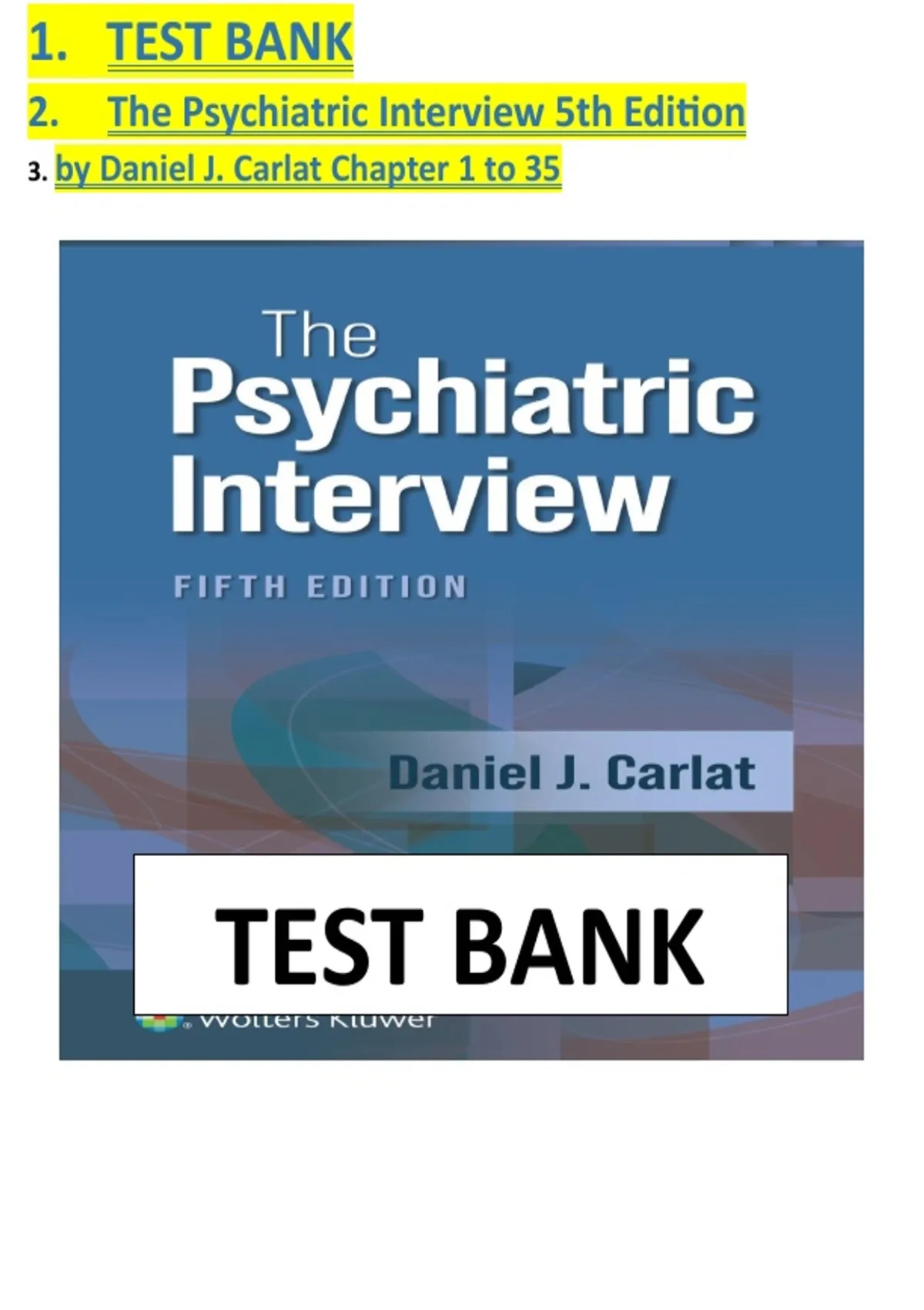Test Bank For The Psychiatric Interview 5th Edition( Daniel J. Carlat , 2026) All Chapters 1-34| Newest Edition