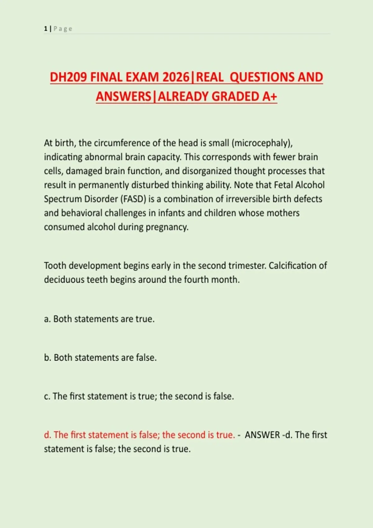 DH209 FINAL EXAM 2026|REAL QUESTIONS AND