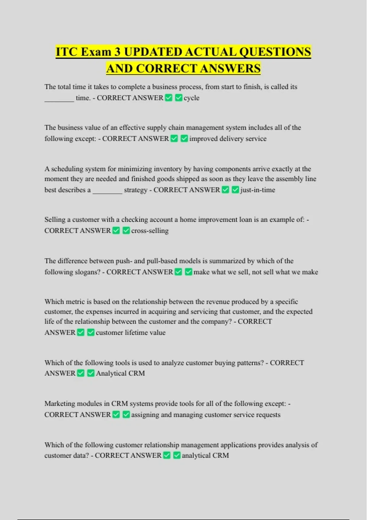 AND CORRECT ANSWERS
