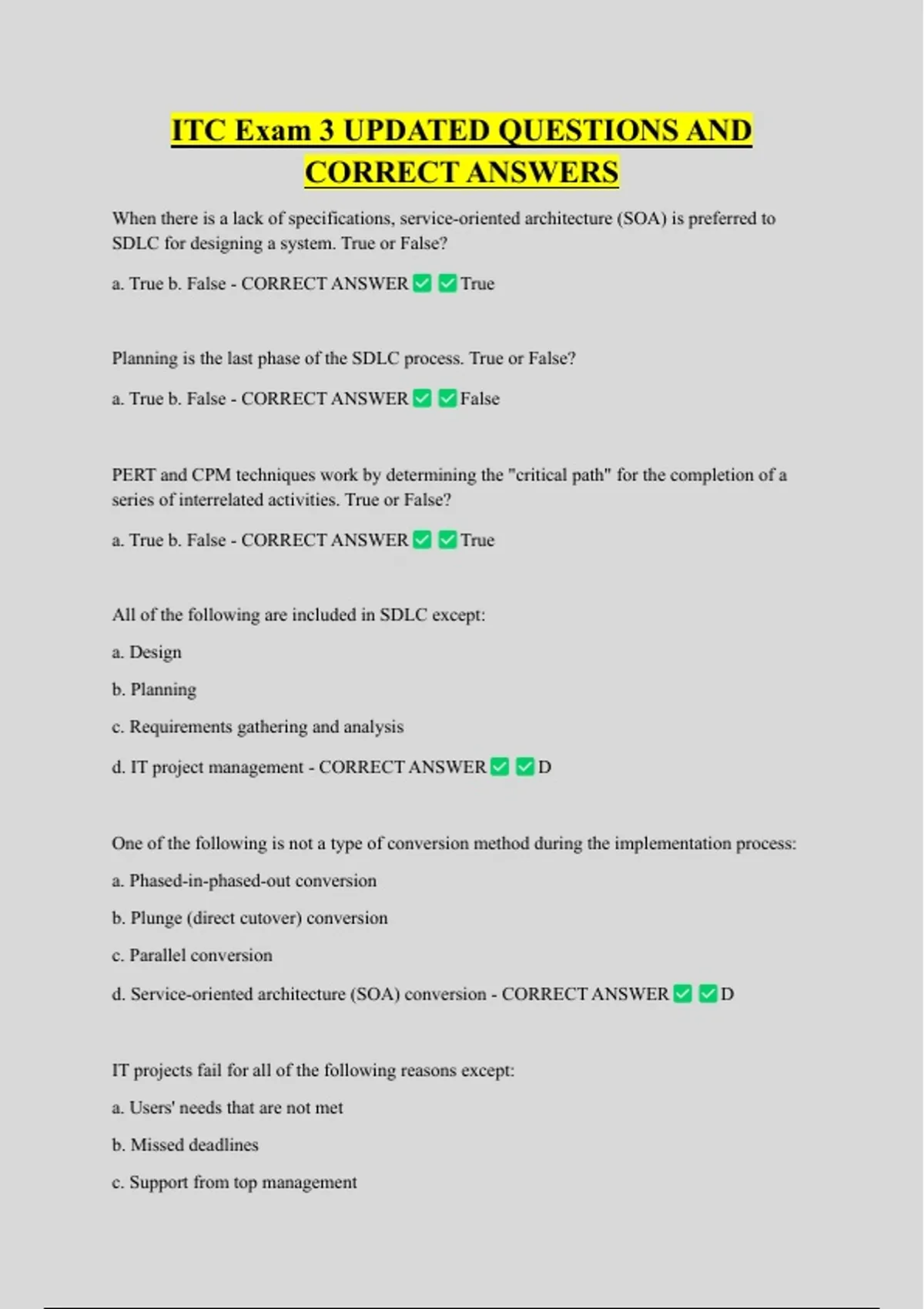 CORRECT ANSWERS