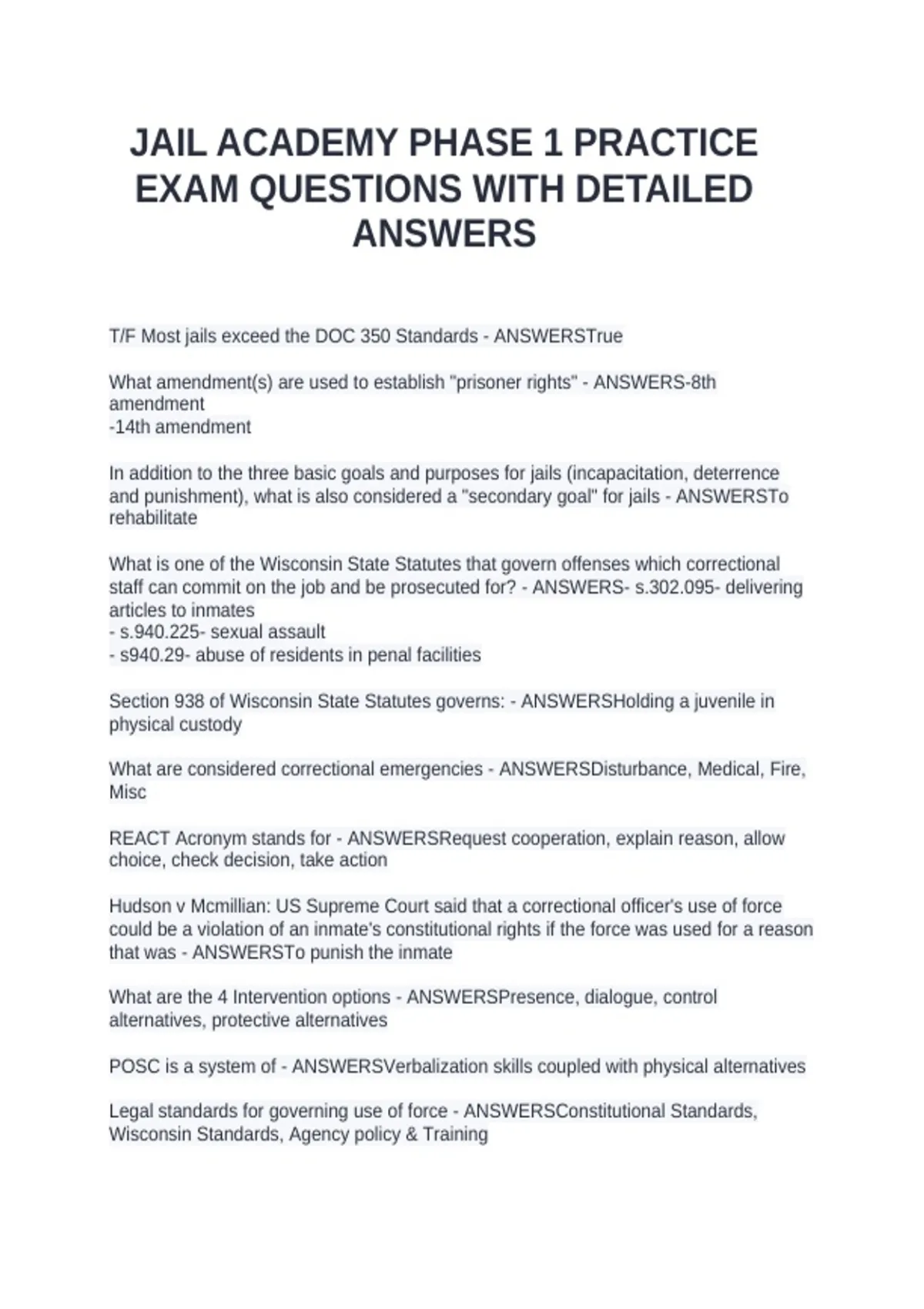 JAIL ACADEMY PHASE 1 PRACTICE EXAM QUESTIONS WITH DETAILED ANSWERS