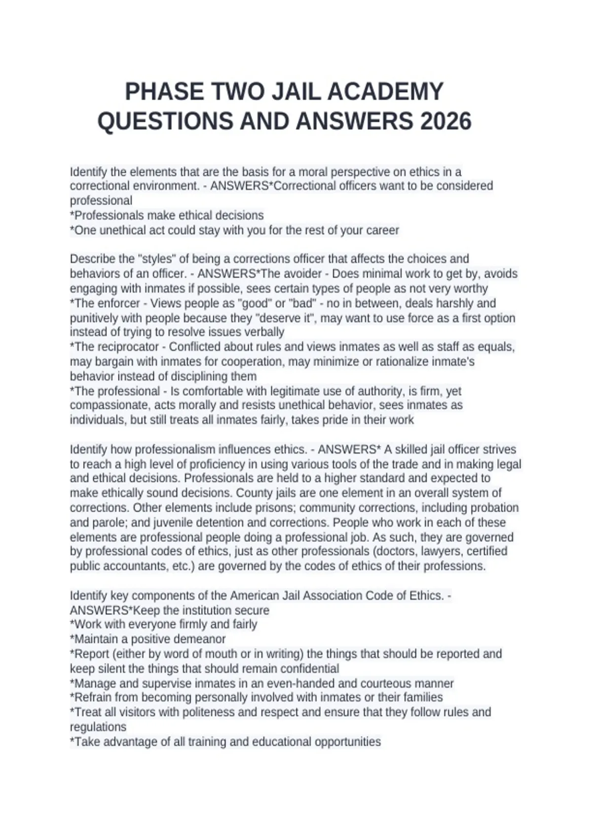 Identify how professionalism influences ethics. - ANSWERS* A skilled jail officer strives