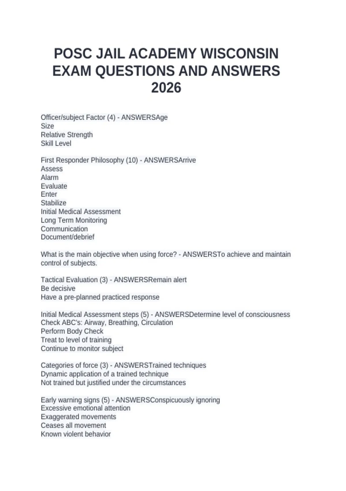 Tactical Evaluation (3) - ANSWERSRemain alert
