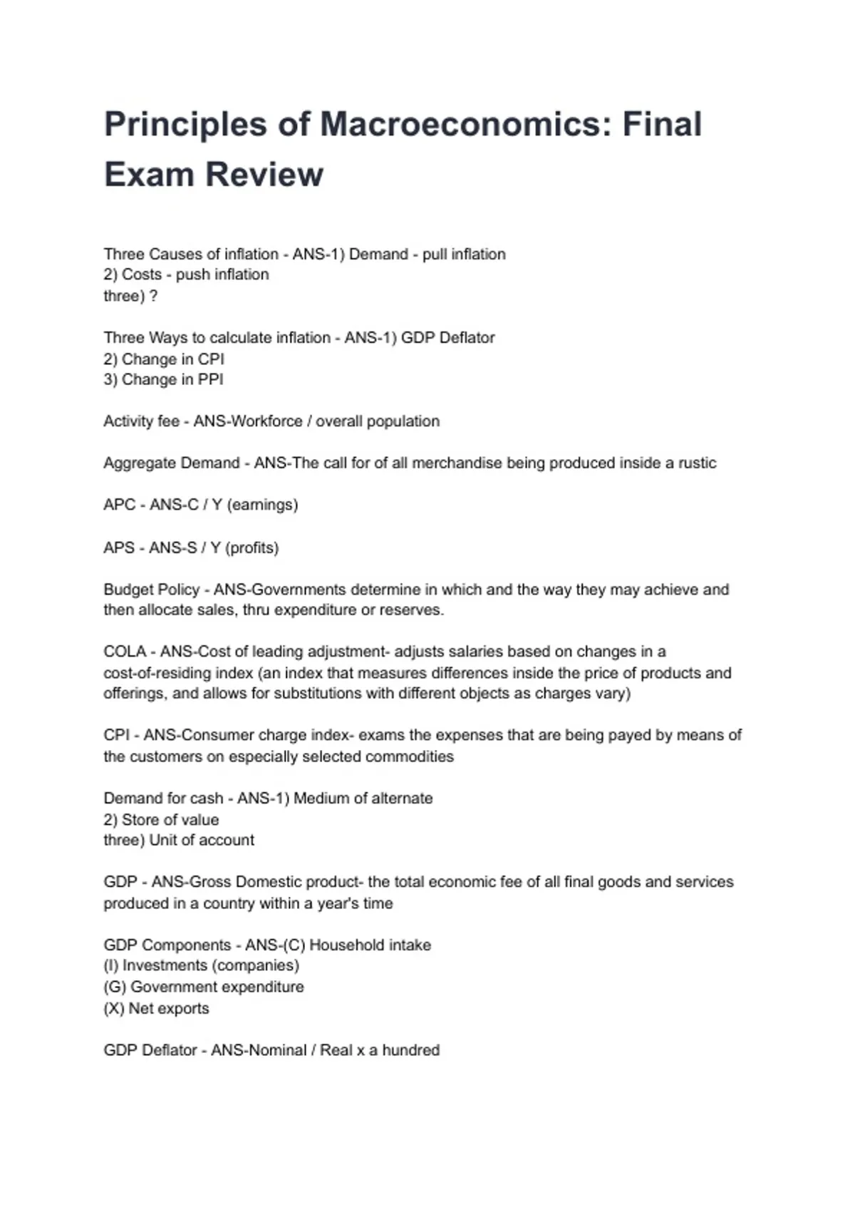 Three Ways to calculate inflation - ANS-1) GDP Deflator
