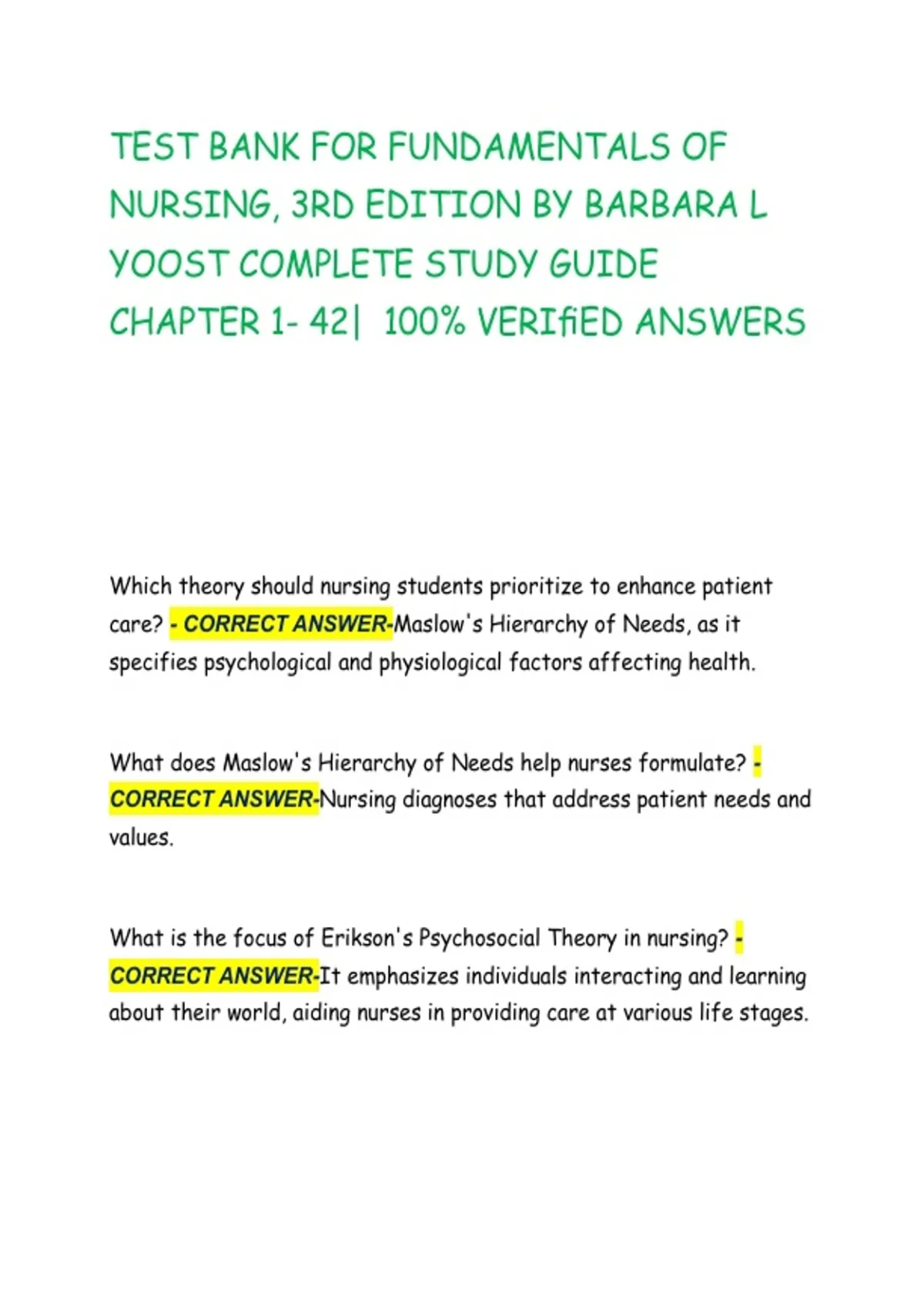 care? - CORRECT ANSWER-Maslow's Hierarchy of Needs, as it