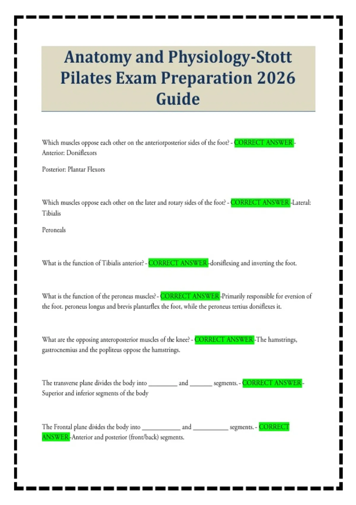 Anatomy and Physiology-Stott Pilates Exam Preparation 2026 Guide