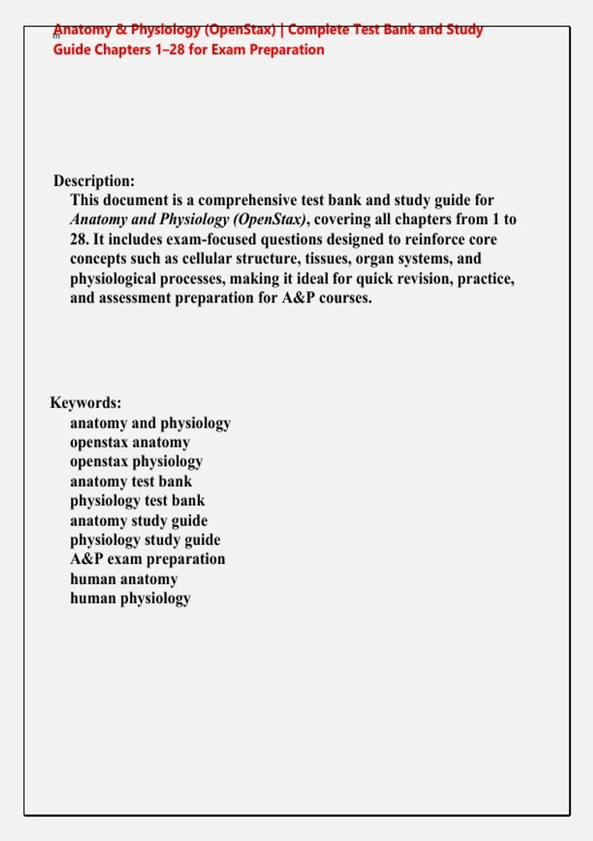 Anatomy & Physiology (OpenStax) | Complete Test Bank and Study Guide Chapters 1–28 for Exam Preparation