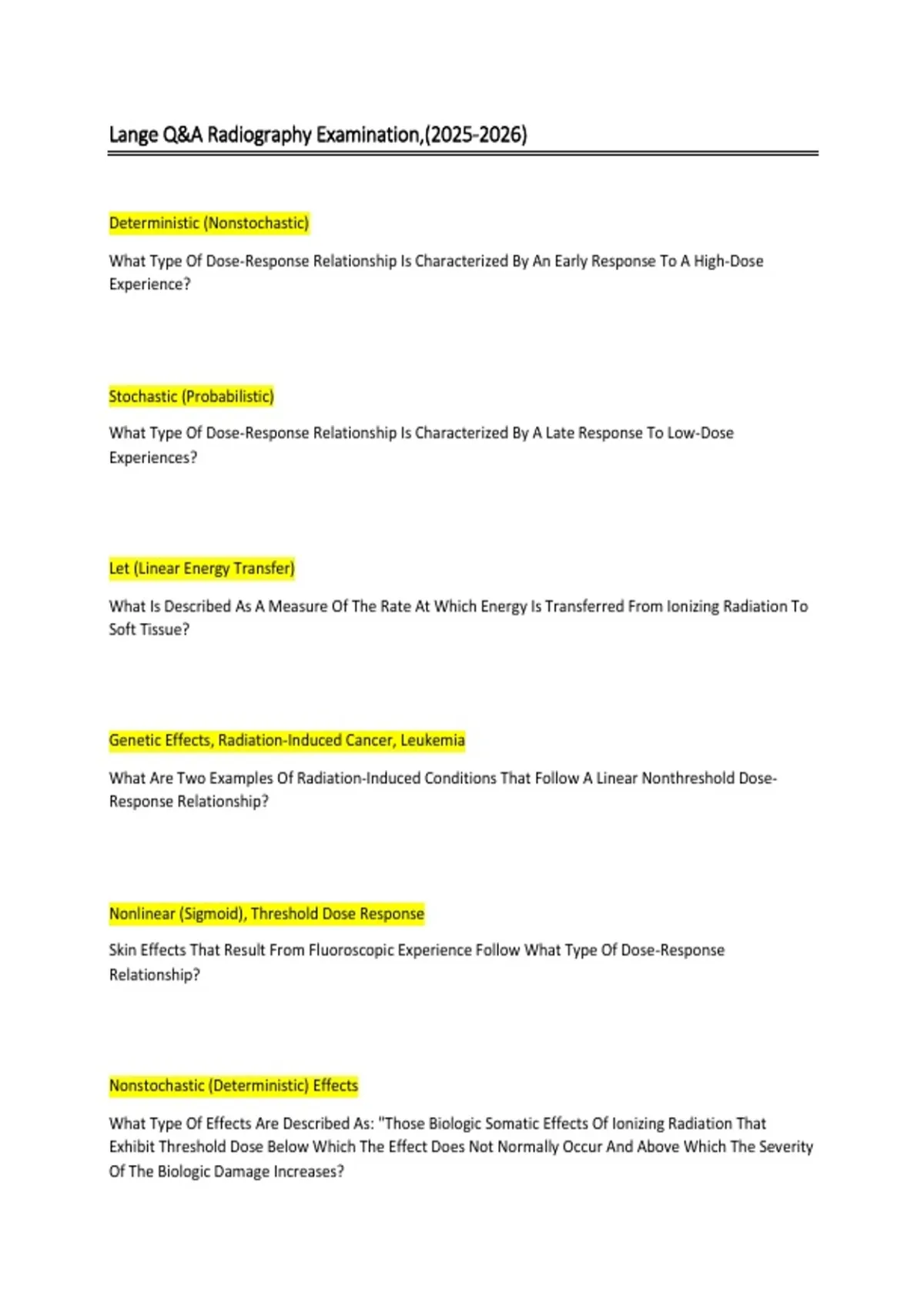 What Are Two Examples Of Radiation-Induced Conditions That Follow A Linear Nonthreshold Dose-
