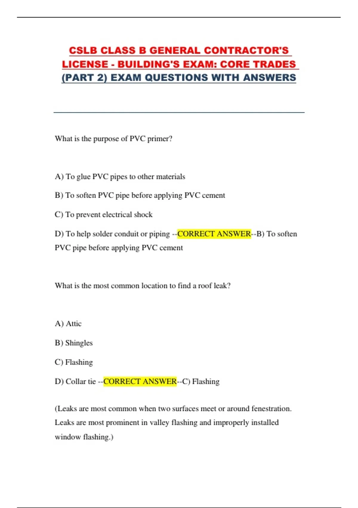 (PART 2) EXAM QUESTIONS WITH ANSWERS