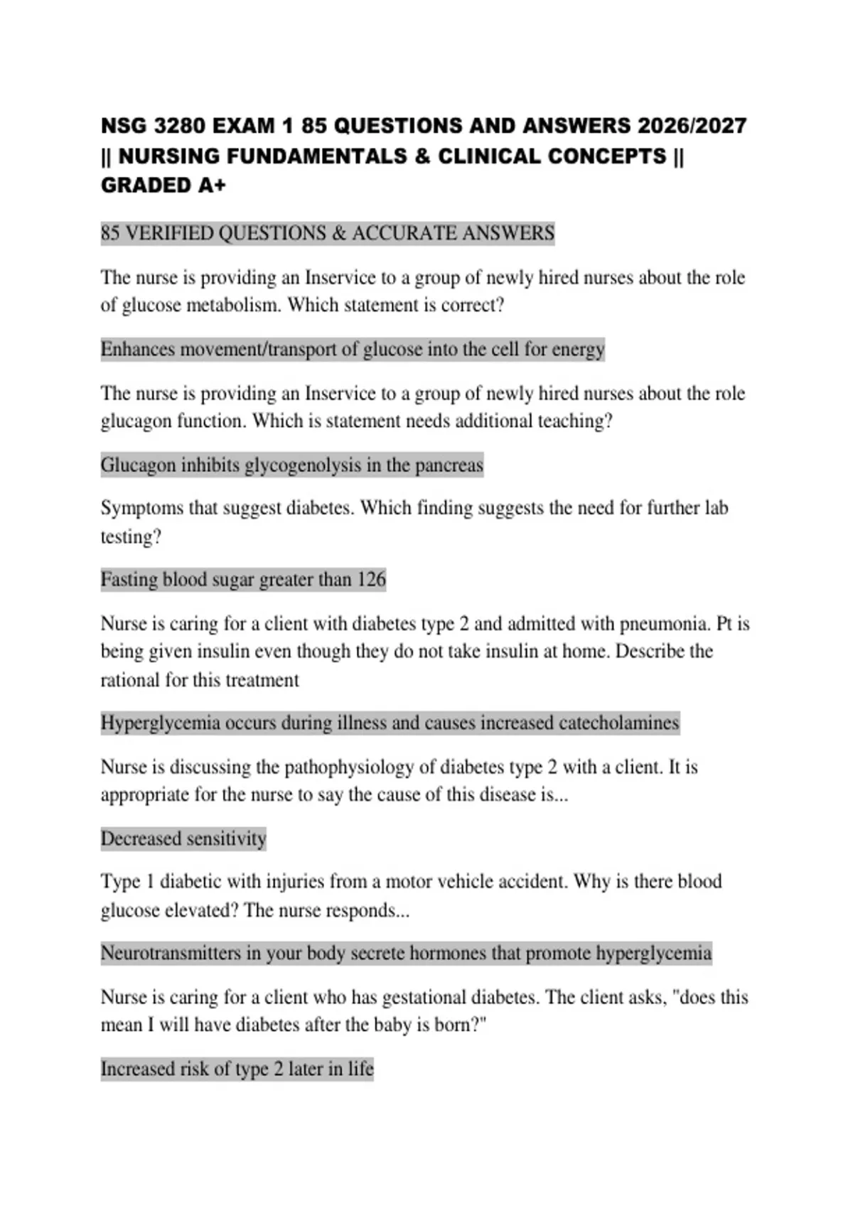 85 VERIFIED QUESTIONS & ACCURATE ANSWERS