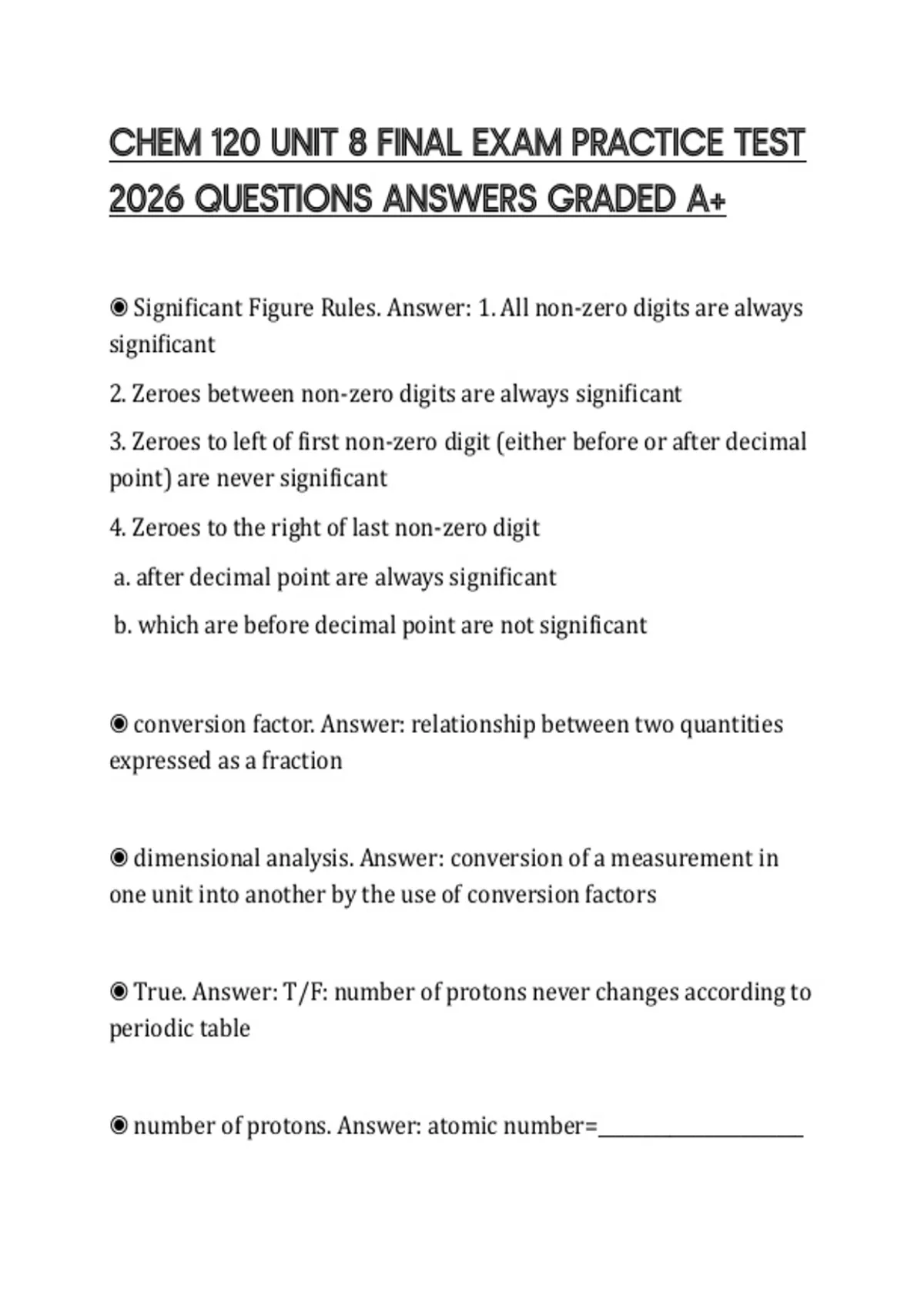 CHEM 120 UNIT 8 FINAL EXAM PRACTICE TEST 2026 QUESTIONS ANSWERS GRADED A+