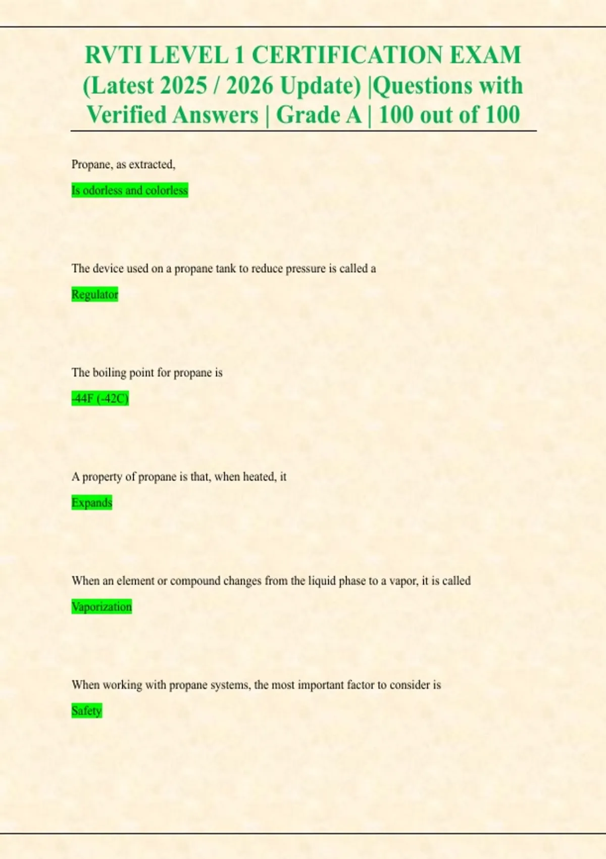 , RVTI LEVEL 1 CERTIFICATION EXAM