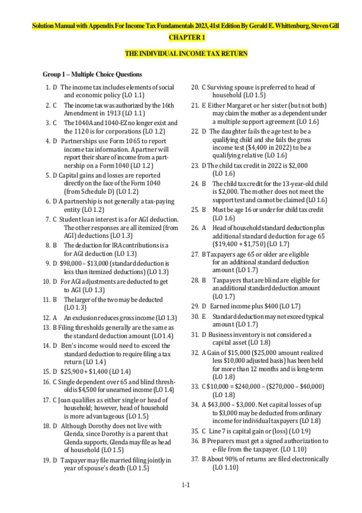 ,1-2 Chapter 1 – The Individual Income Tax Return