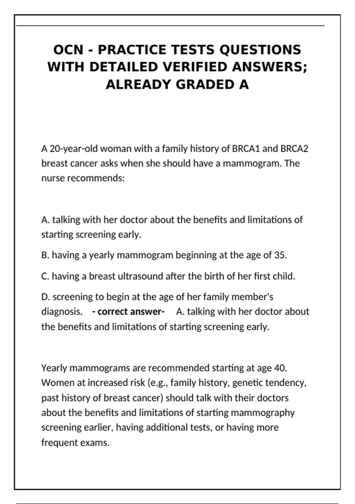 A 20-year-old woman with a family history of BRCA1 and BRCA2