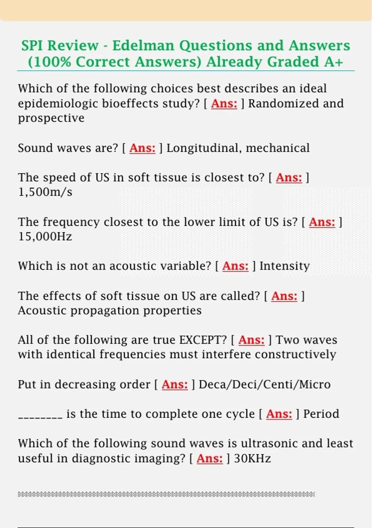SPI Review - Edelman Questions and Answers (100% Correct Answers) Already Graded A+