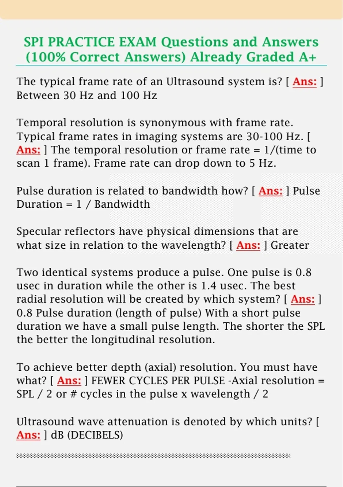 SPI PRACTICE EXAM Questions and Answers (100% Correct Answers) Already Graded A+