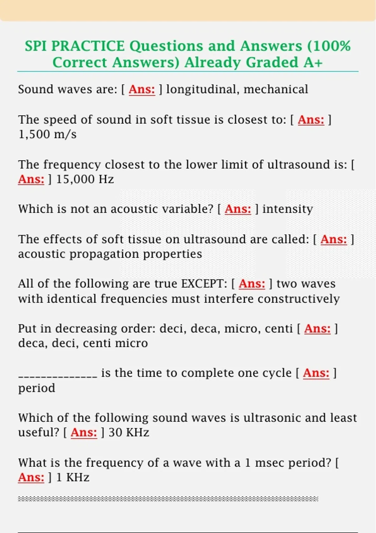 SPI PRACTICE Questions and Answers (100%