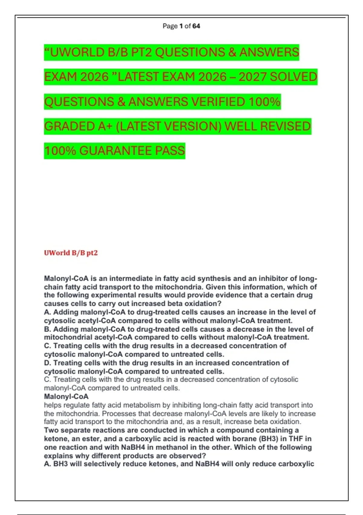 “UWORLD B/B PT2 QUESTIONS & ANSWERS