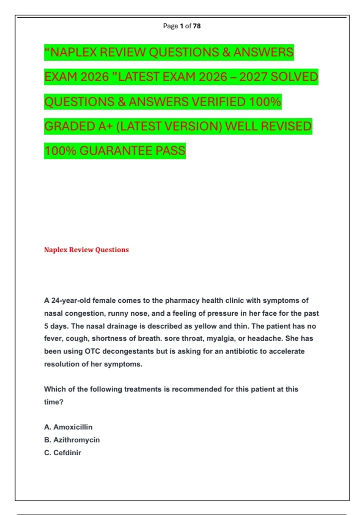 “NAPLEX REVIEW QUESTIONS & ANSWERS
