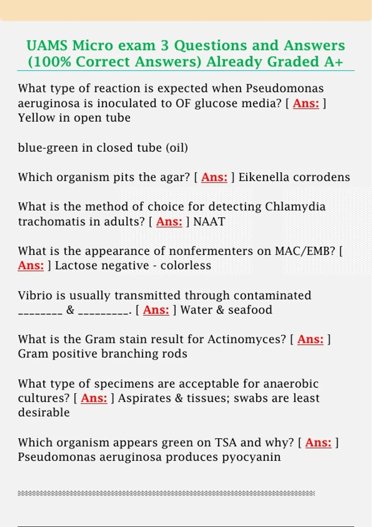 UAMS Micro exam 3 Questions and Answers (100% Correct Answers) Already Graded A+
