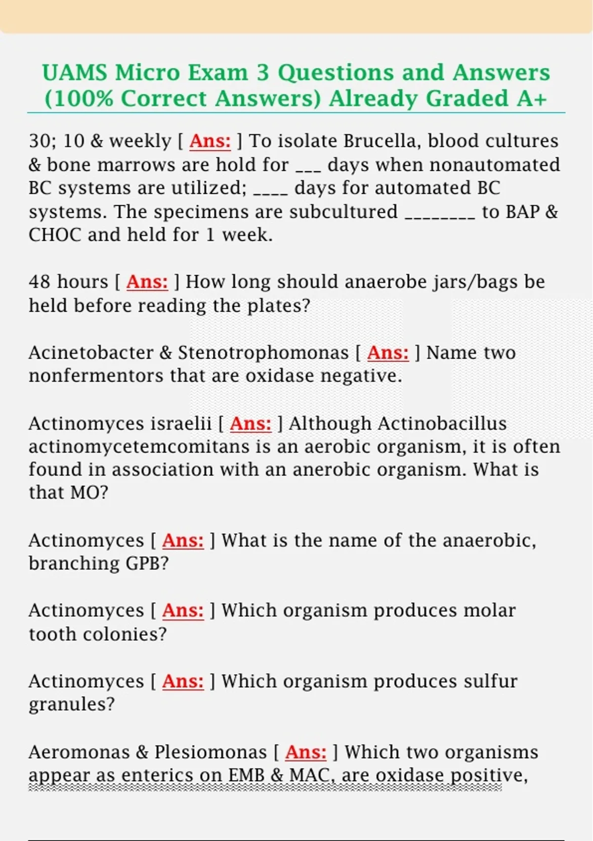 UAMS Micro Exam 3 Questions and Answers (100% Correct Answers) Already Graded A+