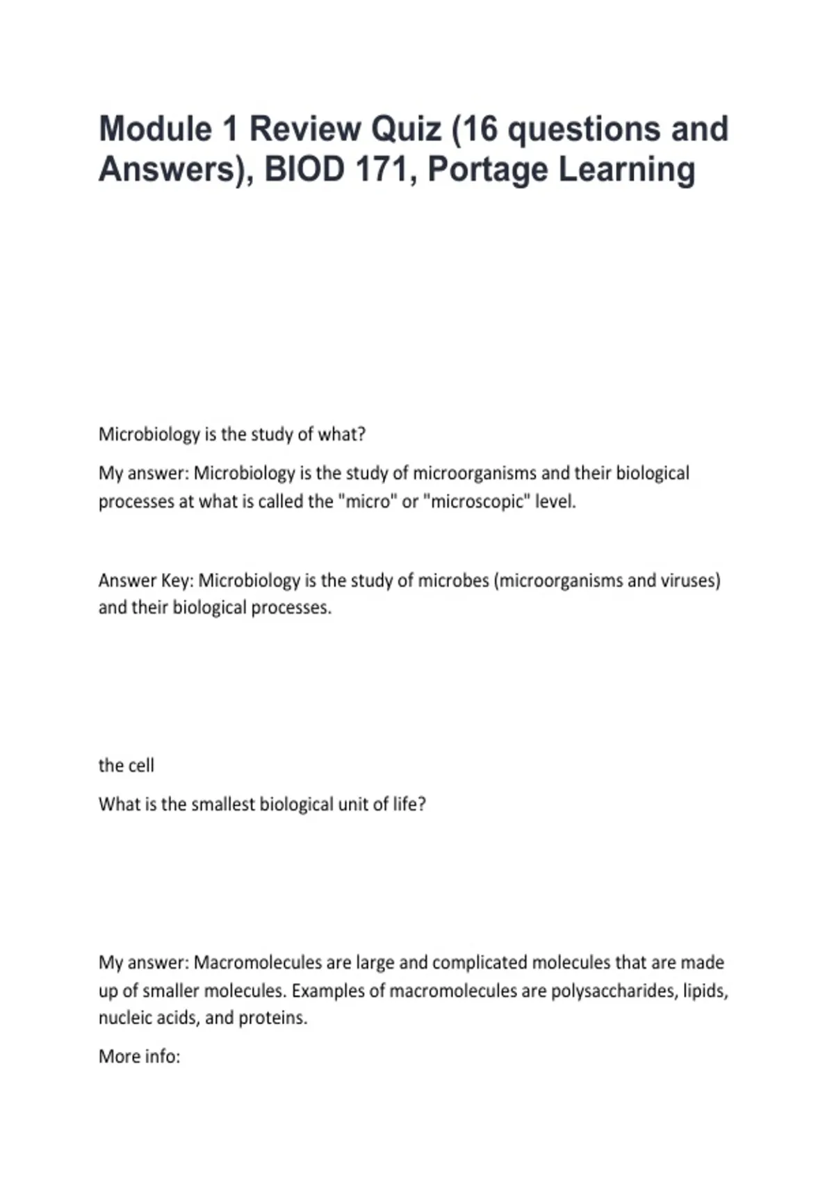 BIOD171 Microbiology Module 1 – Review Quiz (16 Questions & Answers) | Portage Learning