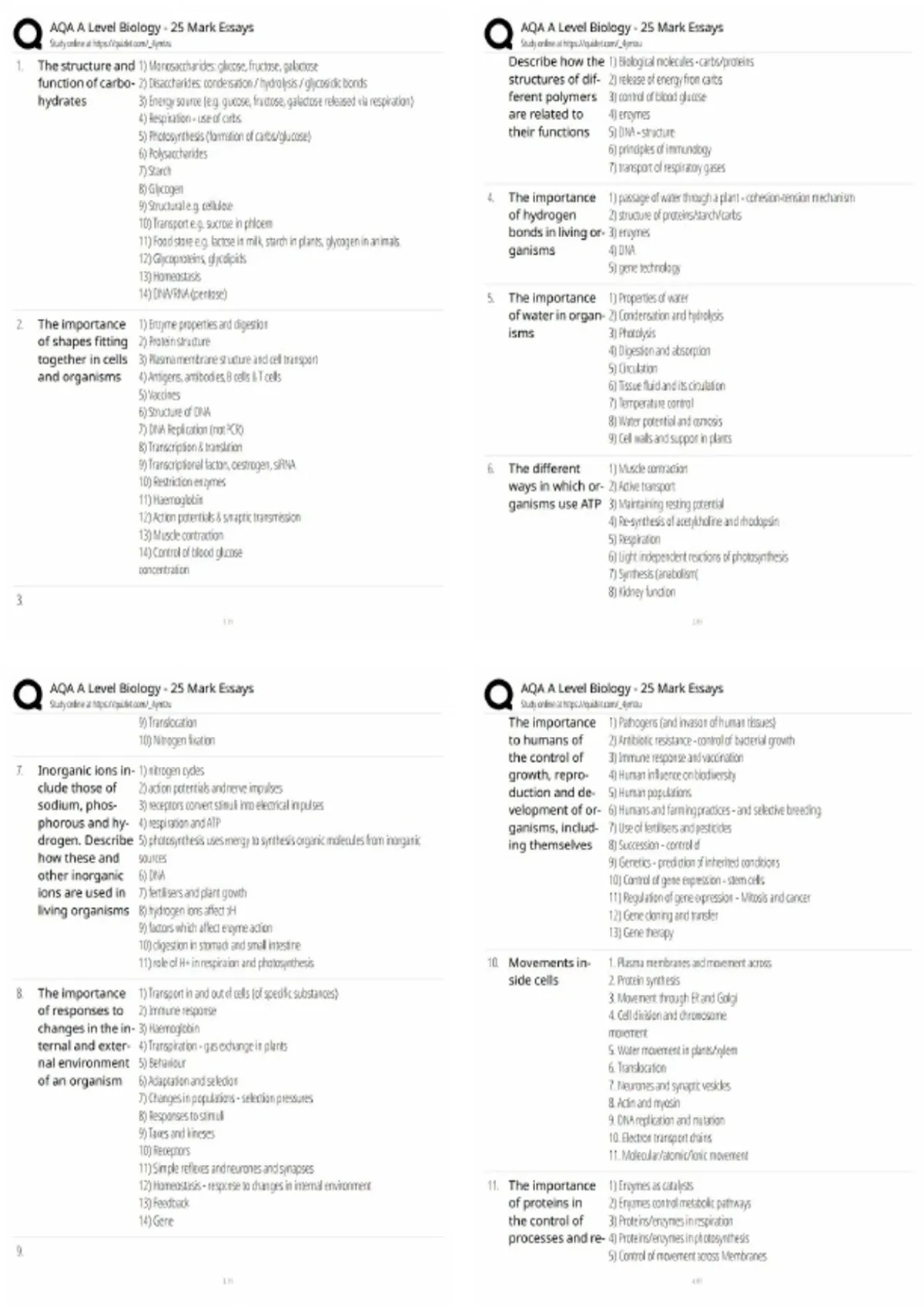 aqa a level biology 25 mark essays