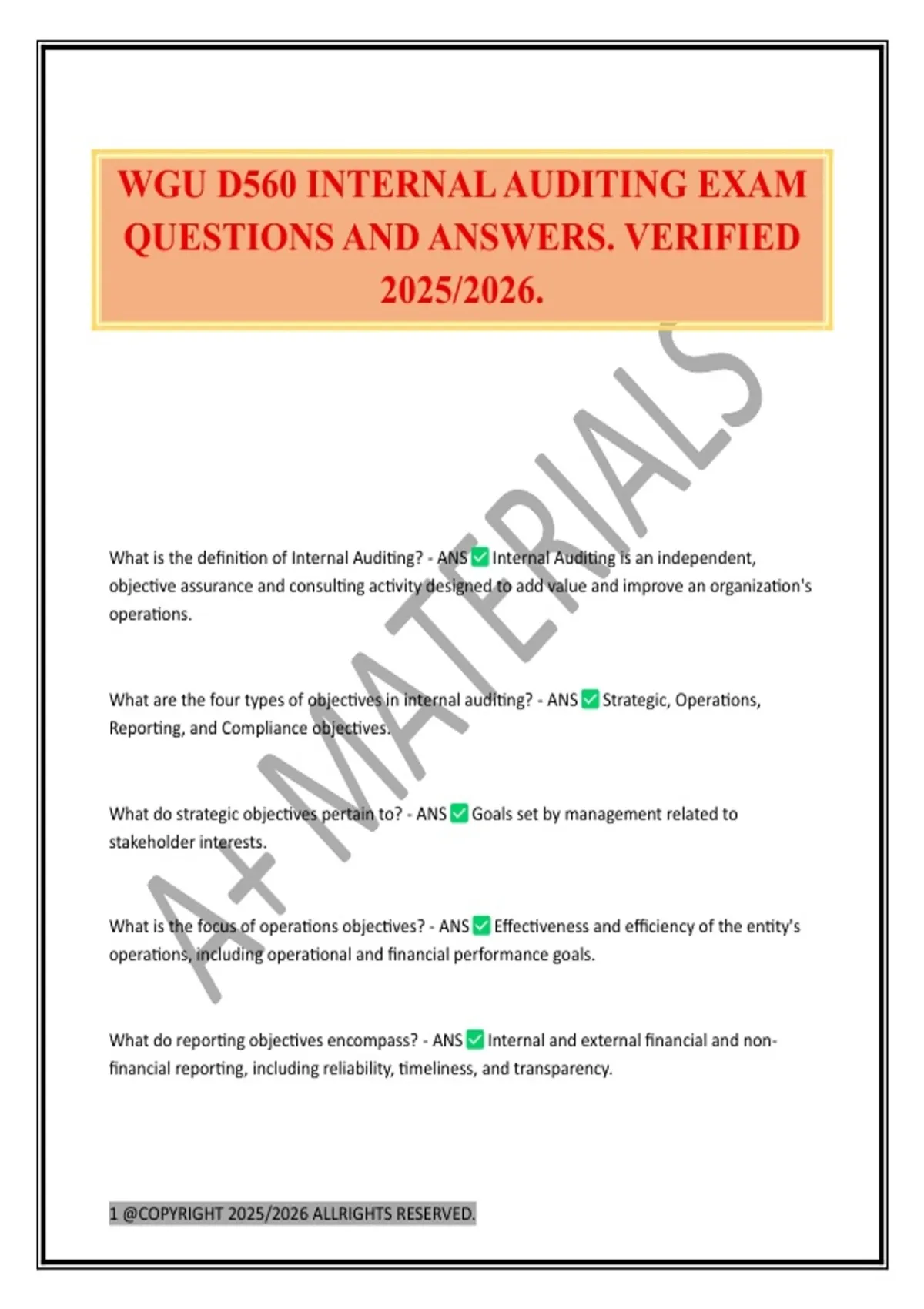WGU D560 INTERNAL AUDITING EXAM