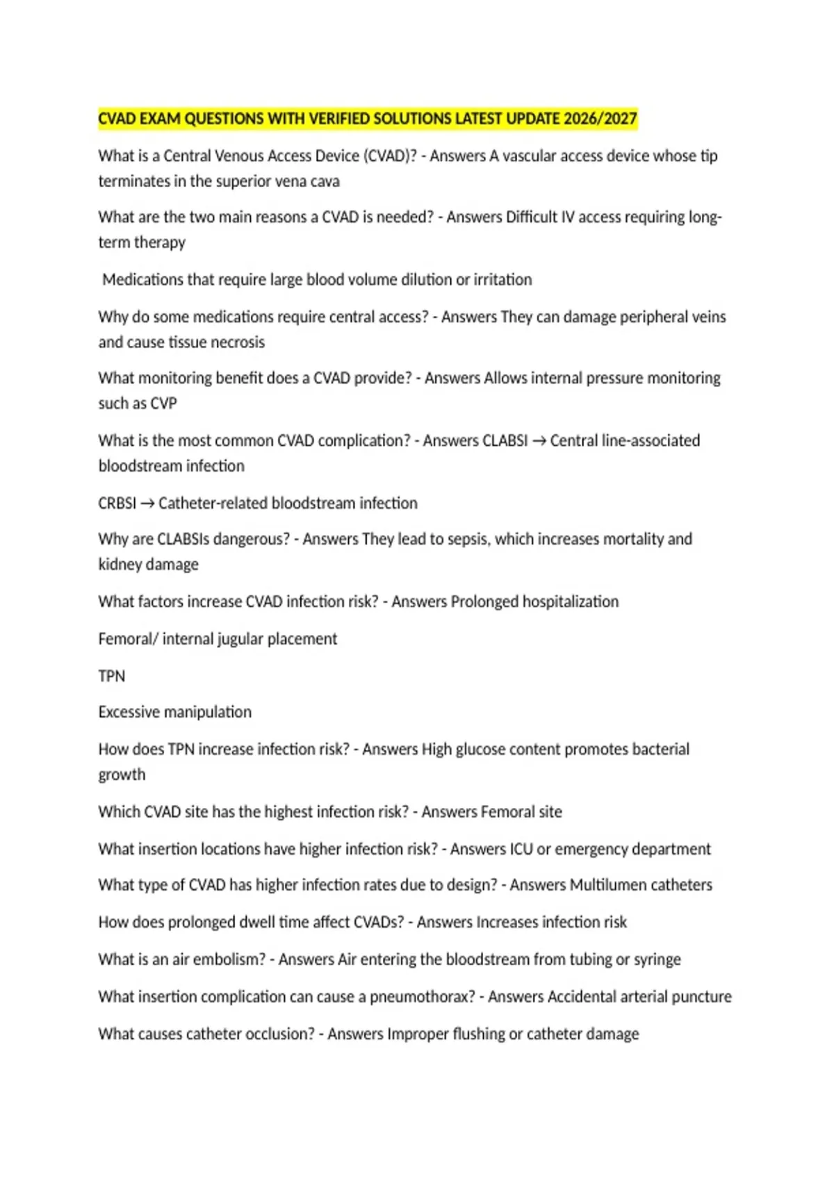 What are the two main reasons a CVAD is needed? - Answers Difficult IV access requiring long-