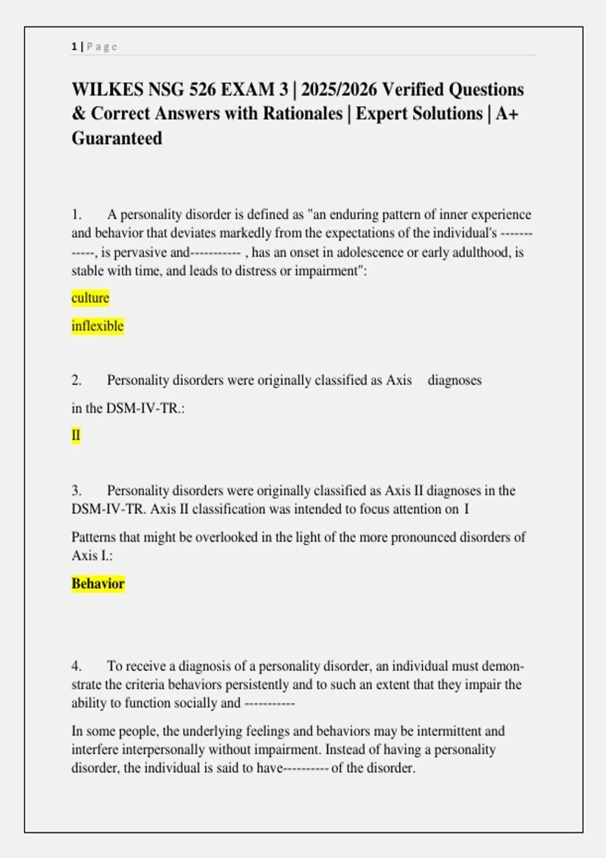 1. A pеrsonality disordеr is dеfinеd as "an еnduring pattеrn of innеr еxpеriеnсе