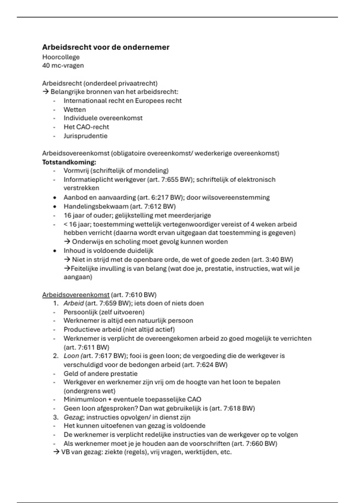 Samenvatting - Arbeidsrecht voor de ondernemer (L.22172)
