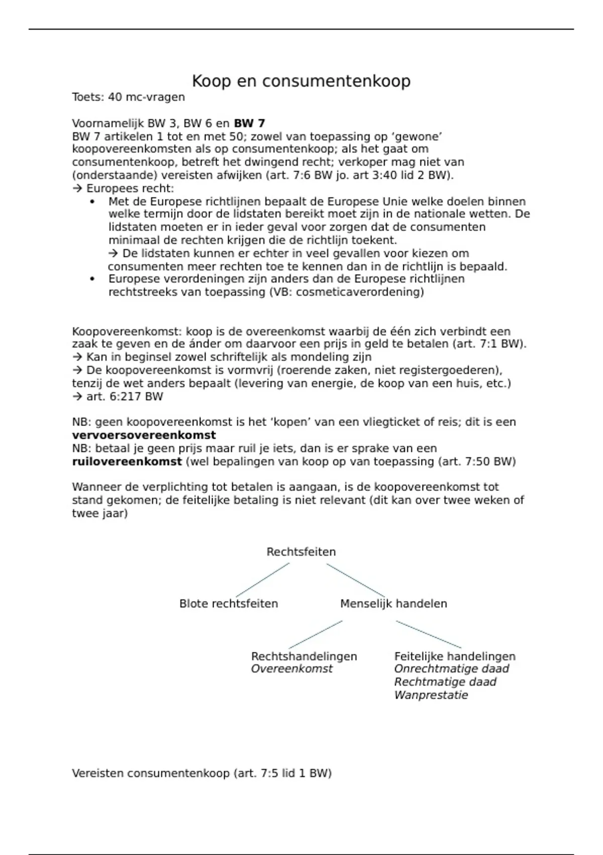 koopovereenkomsten als op consumentenkoop; als het gaat om