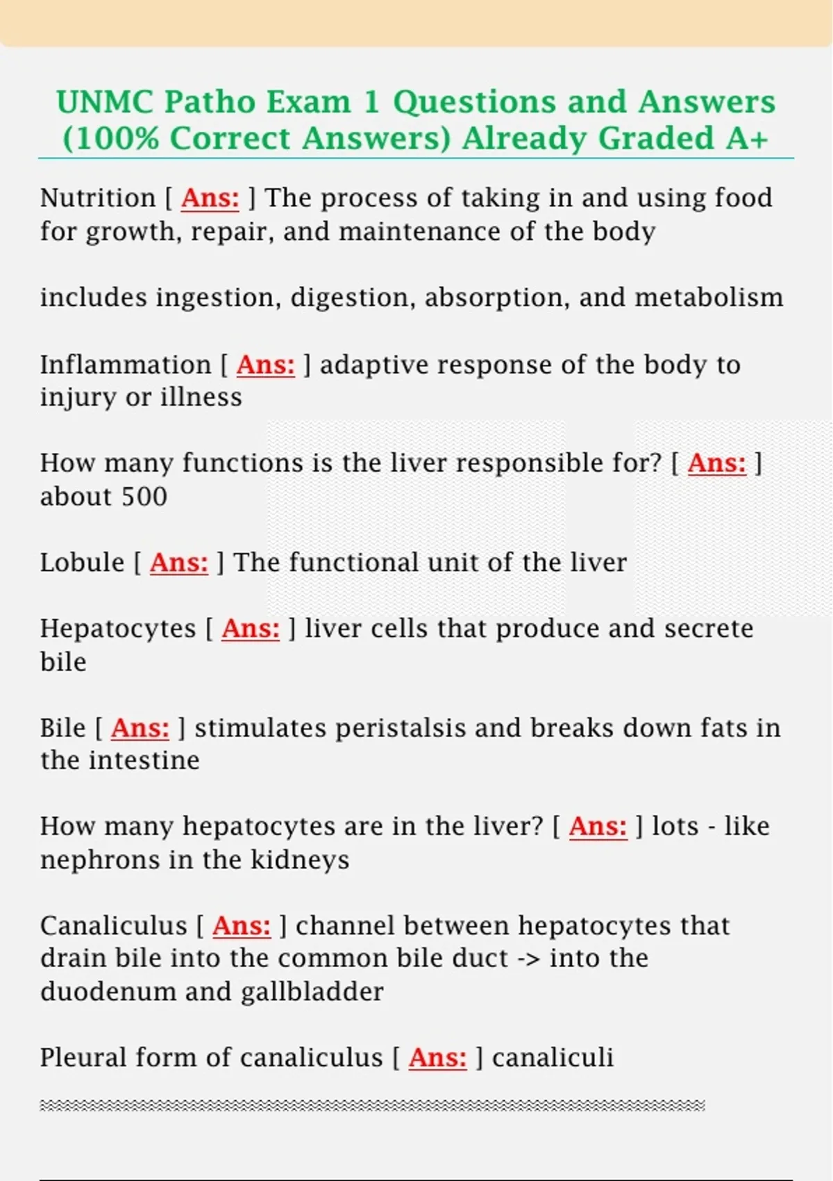 UNMC Patho Exam 1 Questions and Answers (100% Correct Answers) Already Graded A+