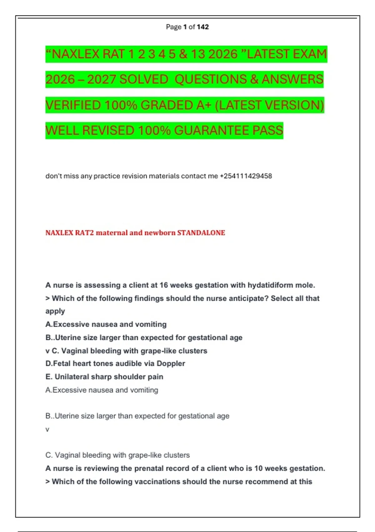 “NAXLEX RAT 1 2 3 4 5 & 13 2026 ”LATEST EXAM