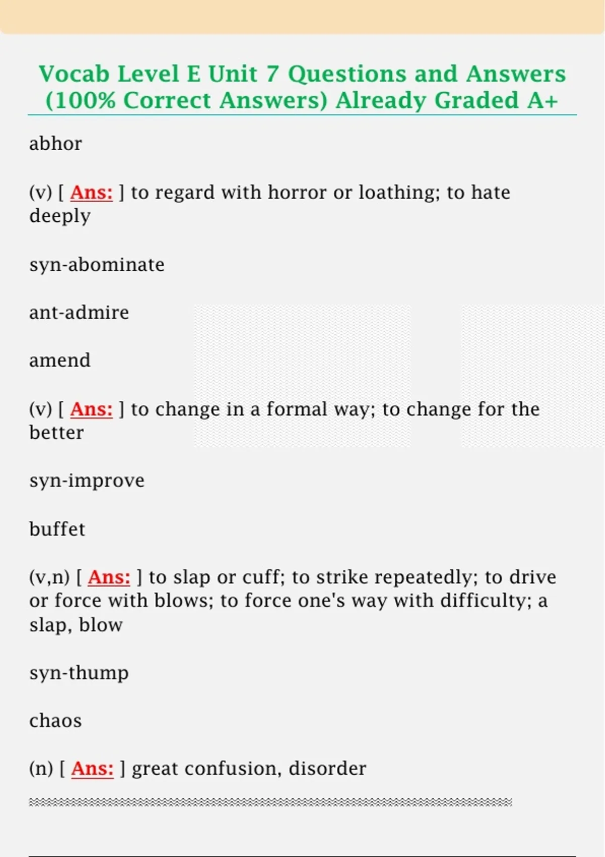 (v) [ Ans: ] to regard with horror or loathing; to hate