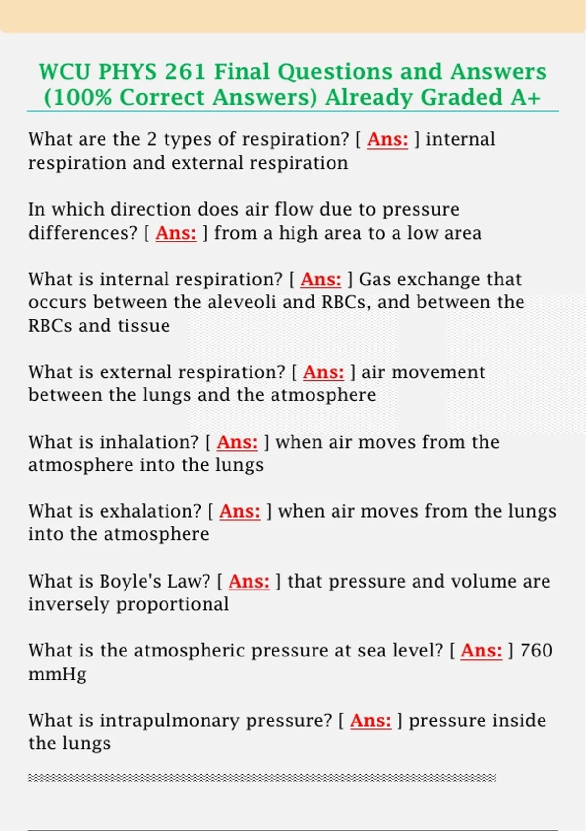 WCU PHYS 261 Final Questions and Answers (100% Correct Answers) Already Graded A+