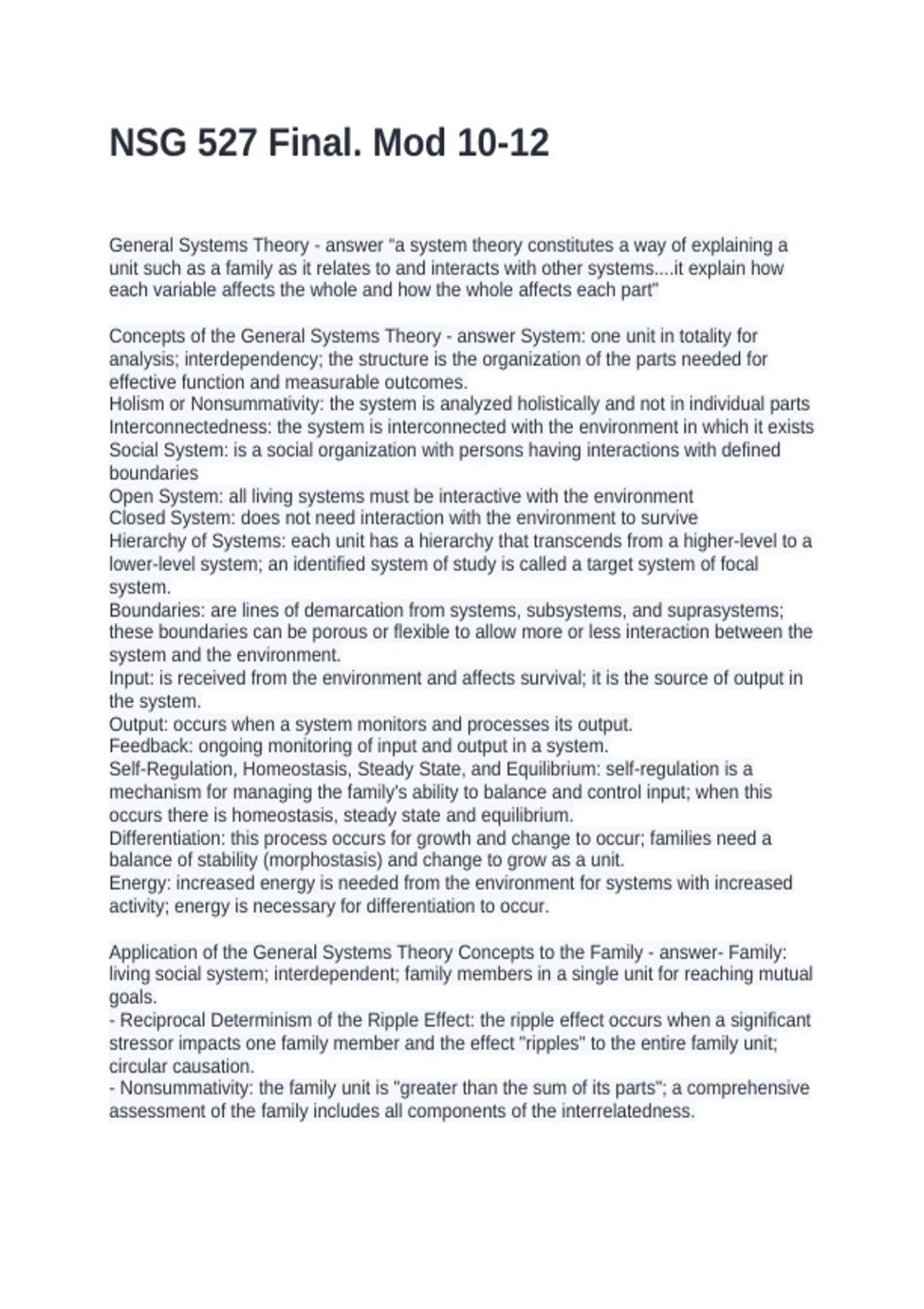NSG 527 Final. Mod 10-12. Questions and ANswers