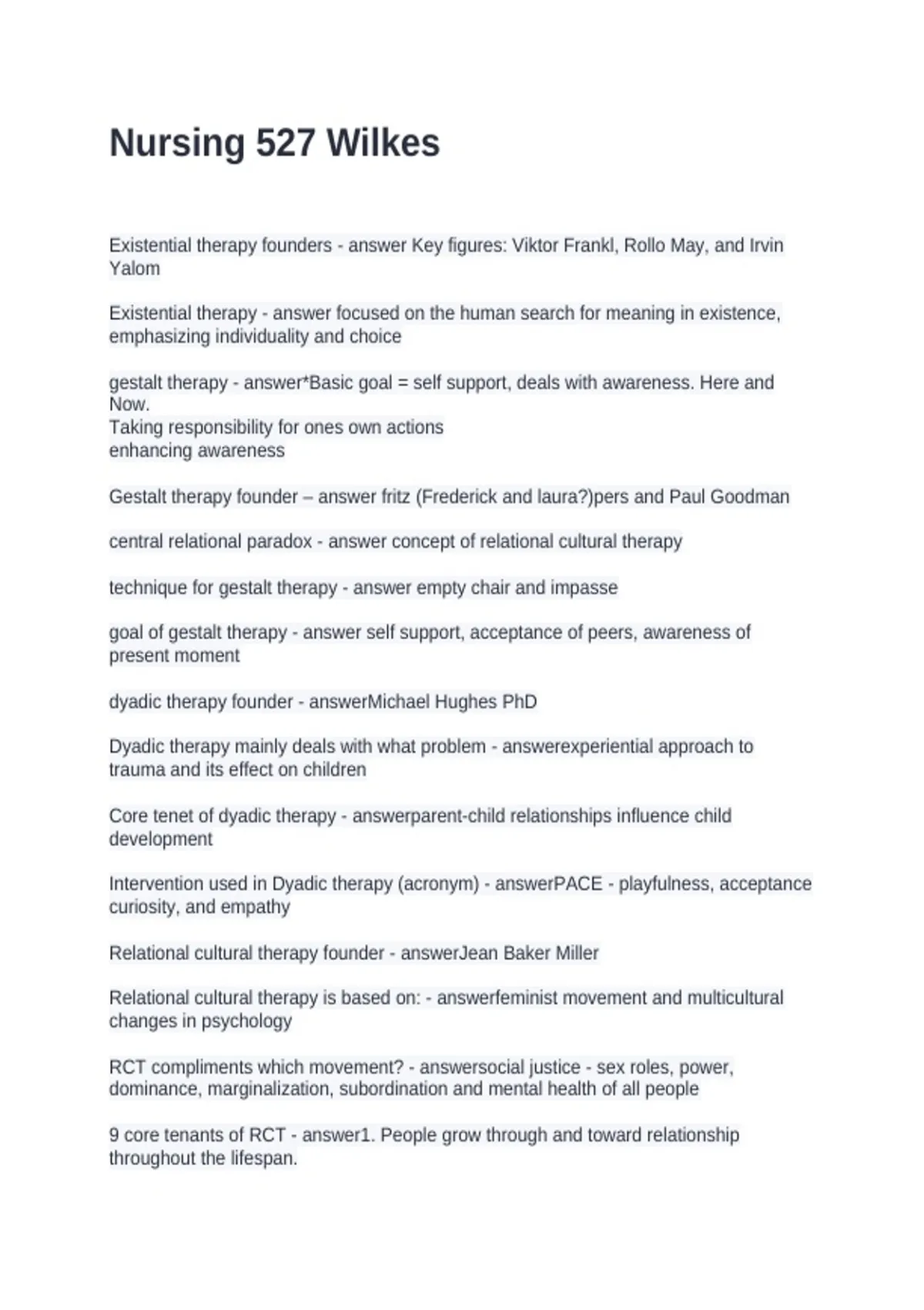 Nursing 527 Wilkes Questions and Answers