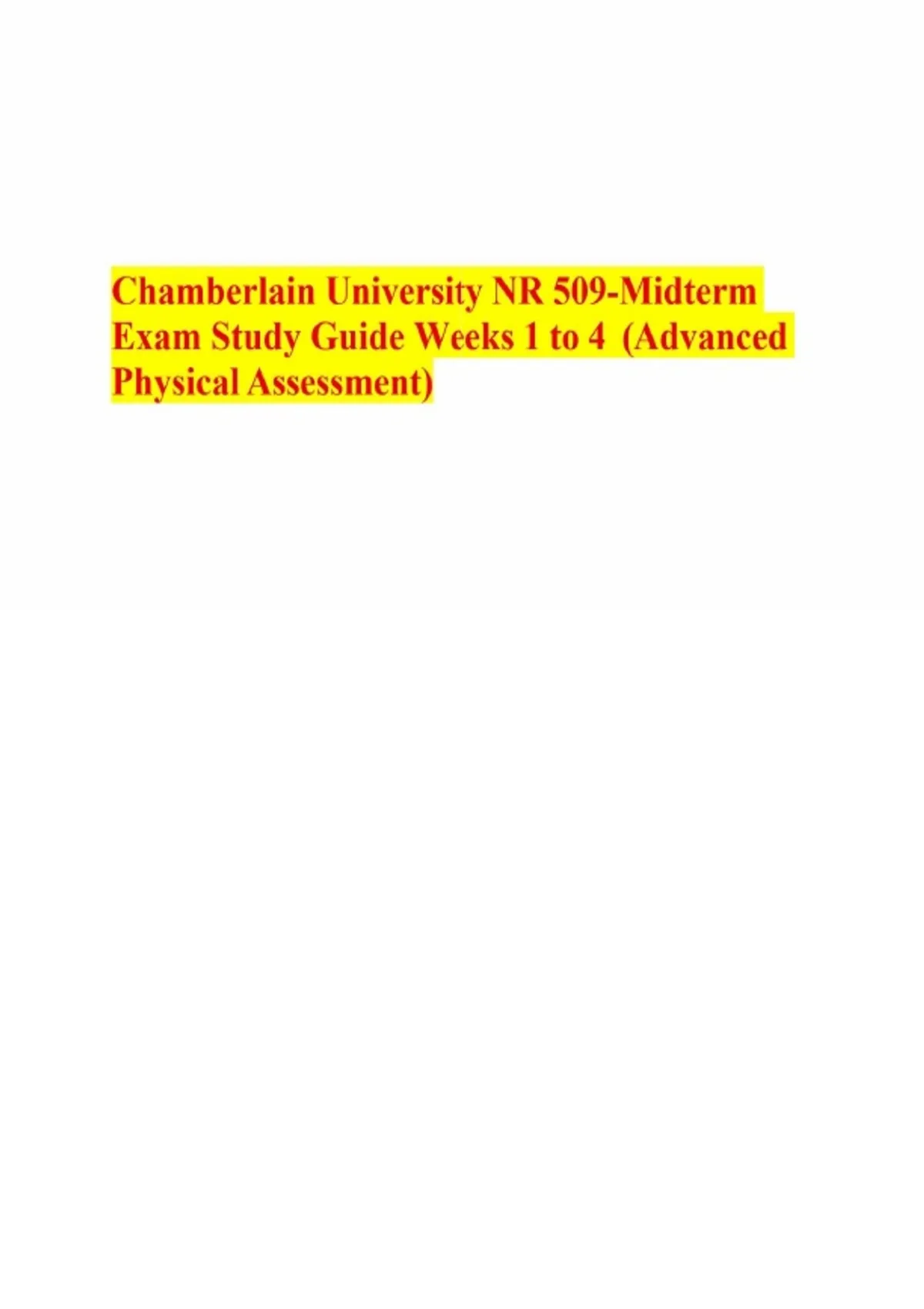 Chamberlain University NR 509-Midterm Exam Study Guide Weeks 1 to 4 (Advanced Physical Assessment).pdf Chamberlain University NR 509-Midterm Exam Study Guide Weeks 1 to 4 (Advanced Physical Assessment).pdf Chamberlain University NR 509-Midterm Exam Study Guide Weeks 1 to 4 (Advanced Physical Assessment).pdf
