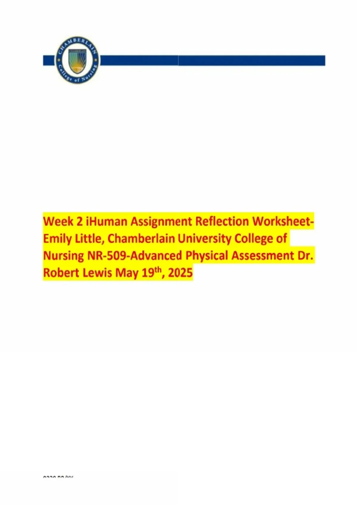 Week 2 iHuman Assignment Reflection Worksheet-Emily Little, Chamberlain University College of Nursing NR-509-Advanced Physical Assessment Dr. Robert Lewis May 19th, 2025.pdf
