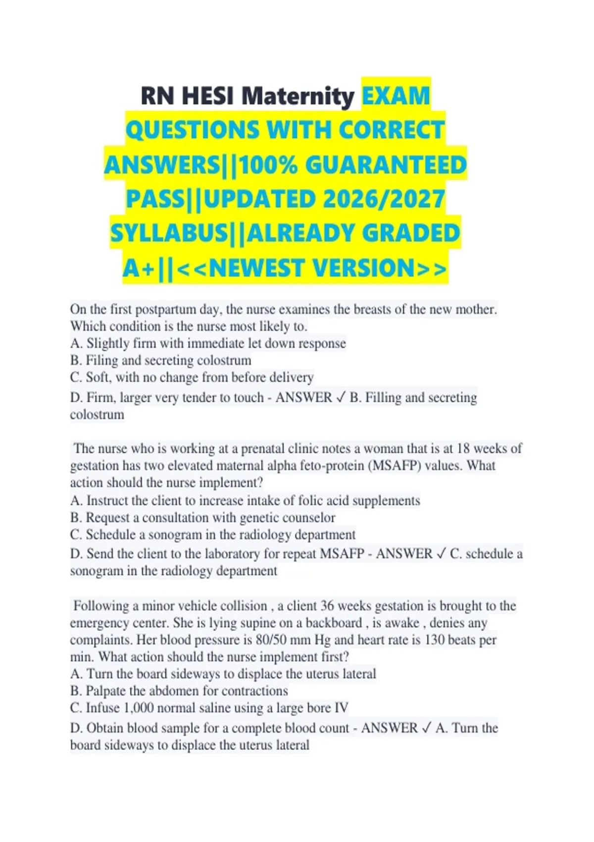 D. Obtain blood sample for a complete blood count - ANSWER ✓ A. Turn the